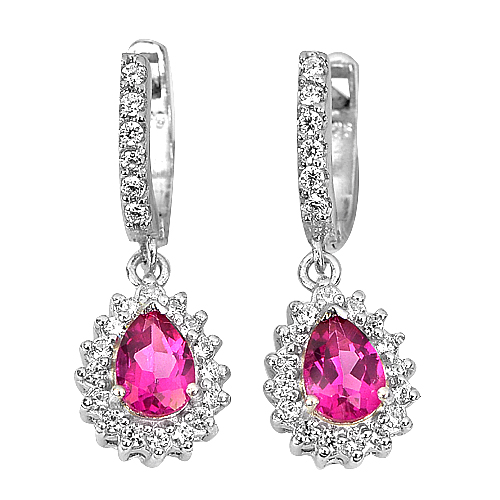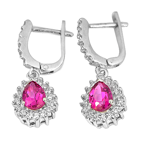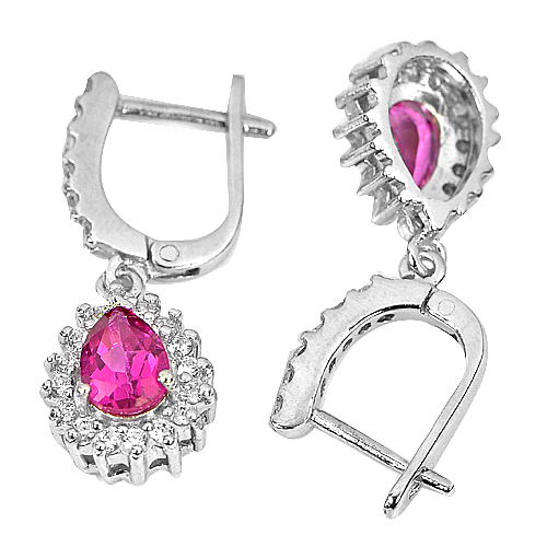 4.36 G. Natural Gems Pink Topaz with White CZ Real 925 Sterling Silver Earrings