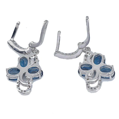 8.36 G. Nice Natural Gems London Blue Topaz Real 925 Sterling Silver Earrings
