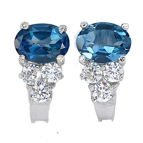4.61 G. Oval Shape Natural London Blue Topaz Real 925 Sterling Silver Earrings