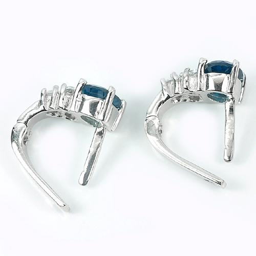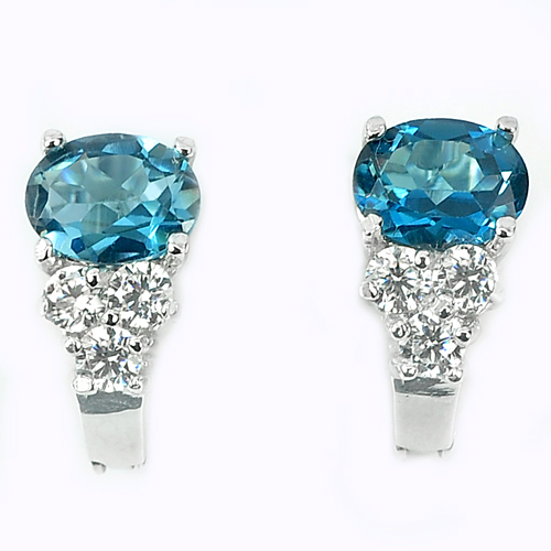 4.78 G. Natural Gems London Blue Topaz Real 925 Sterling Silver Earrings