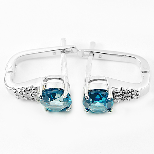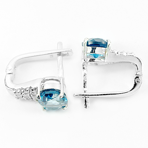 5.19 G. Natural Gems London Blue Topaz Real 925 Sterling Silver Earrings