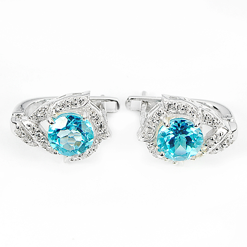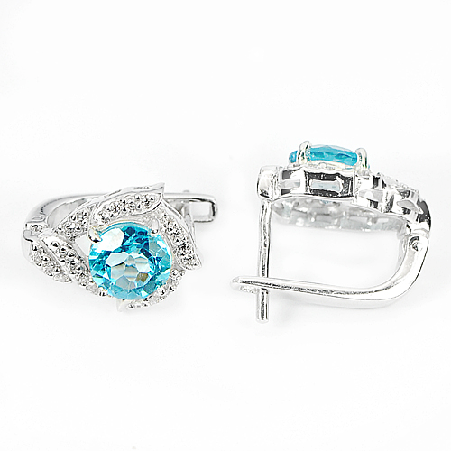 5.01 G. Natural Round Swiss Blue Topaz Real 925 Sterling Silver Earrings