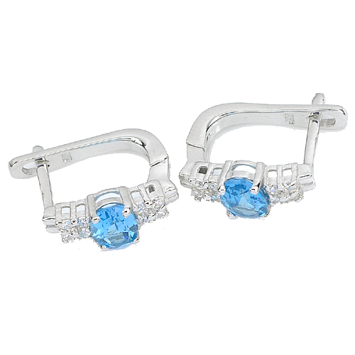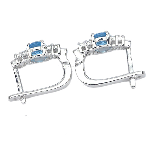 3.75 G. Beautiful Natural Swiss Blue Topaz Real 925 Sterling Silver Earrings