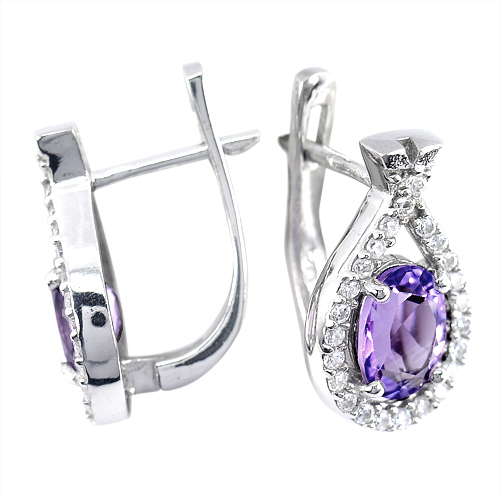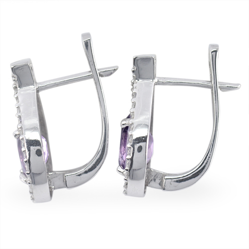 Purple Amethyst with Cz Real 925 Sterling Silver Earrings 4.51 G. Natural Gems