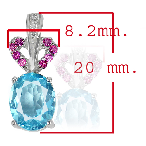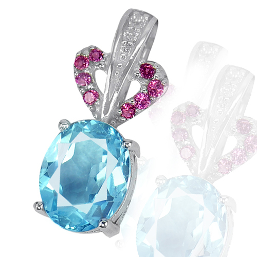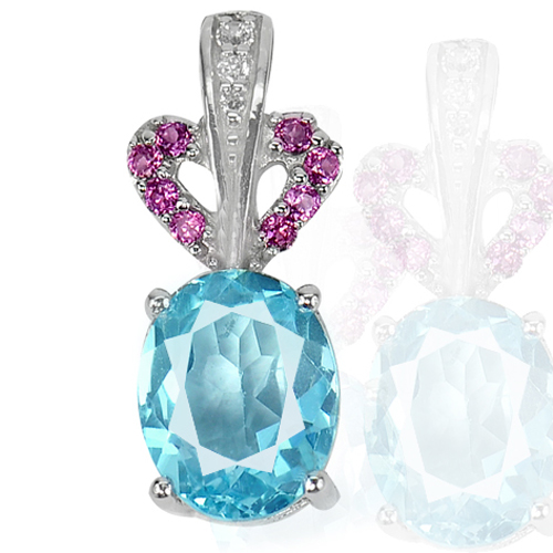 Gems Natural Blue Topaz and Rhodolite Garnet Real 925 Sterling Silver Pendant