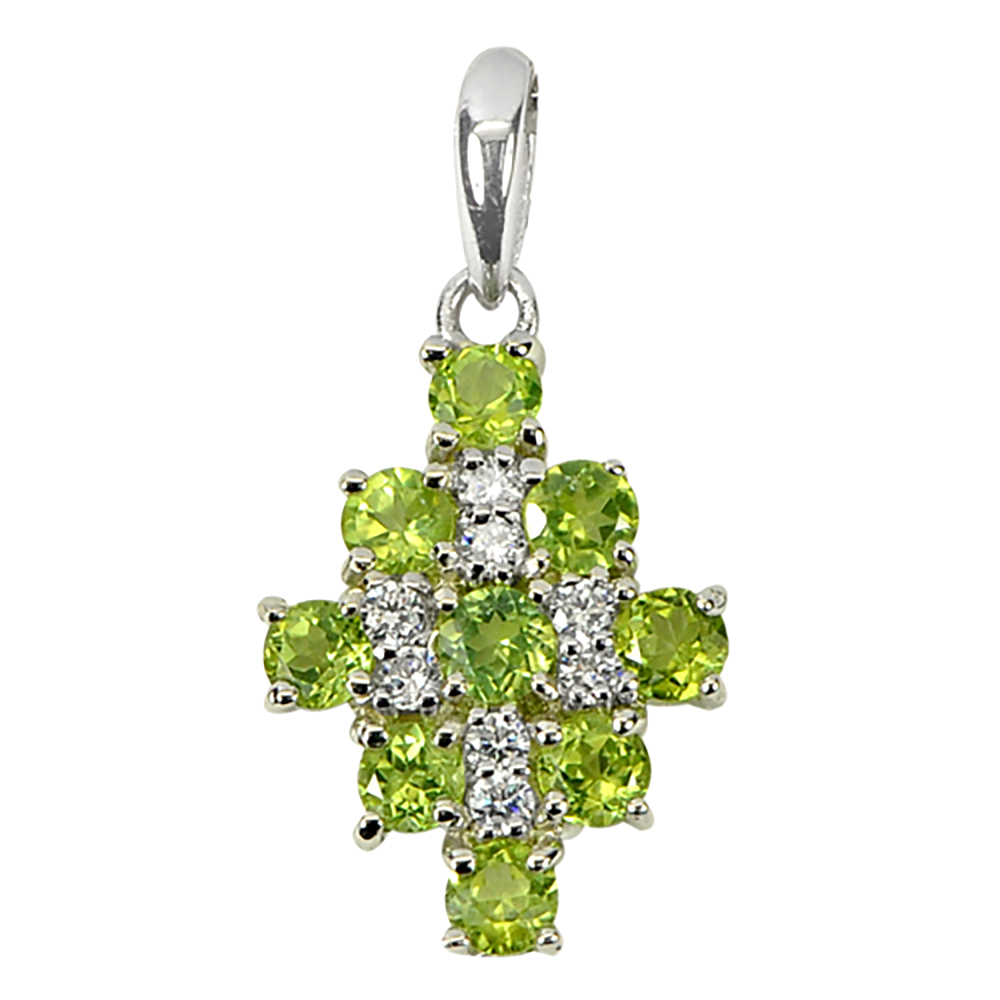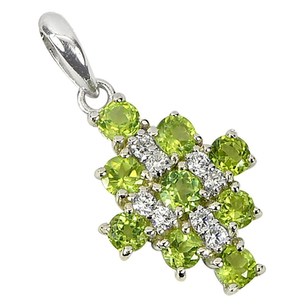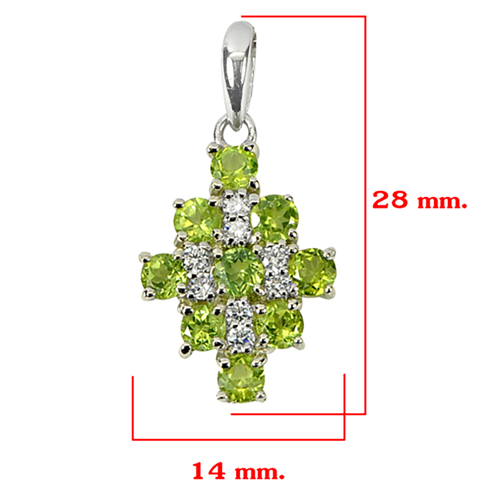 Real 925 Sterling Silver Pandant With Natural Gemstone Green Peridot and Cz