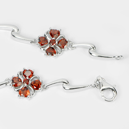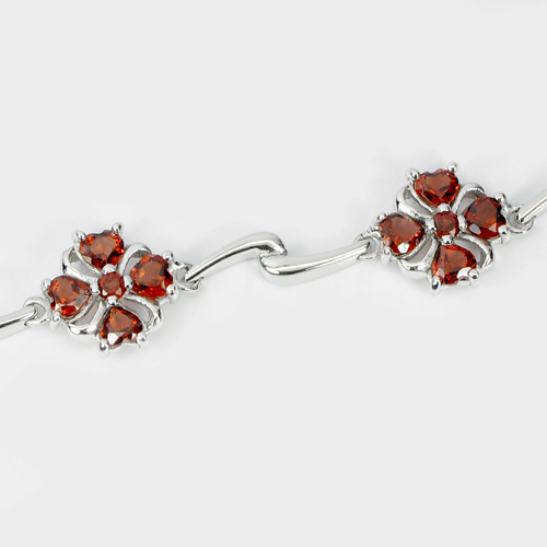 Natural Garnet Real 925 Sterling Silver White Gold Plated Bracelet 7.5 Inch.