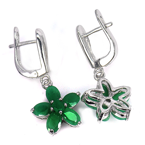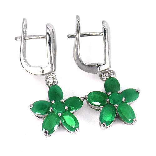 6.92 G. Oval Shape Natural Gems Green Emerald Real 925 Sterling Silver Earrings