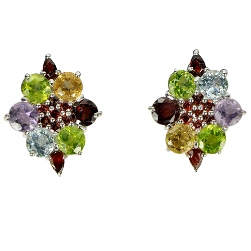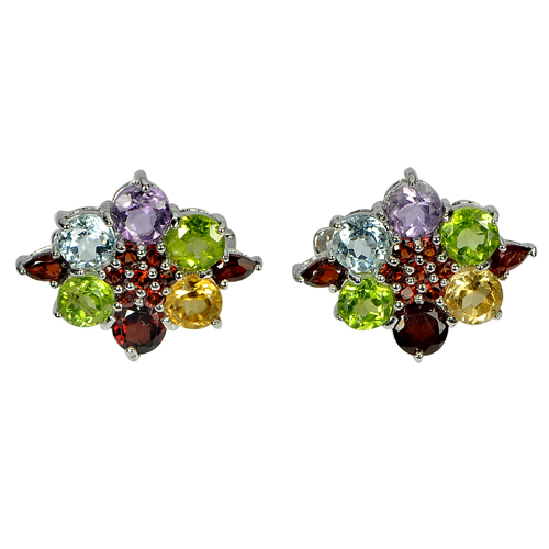 11.51 G. Natural Peridot Topaz Garnet Real 925 Sterling Silver Jewelry Earrings