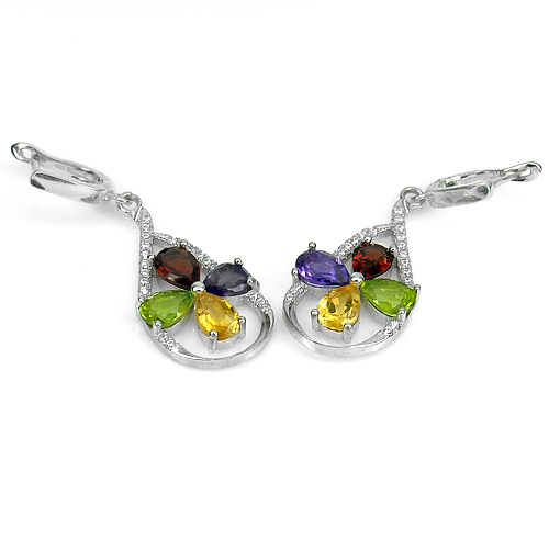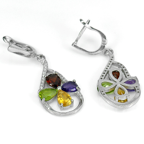 Natural Garnet Peridot Real 925 Sterling Silver White Gold Plated Earrings