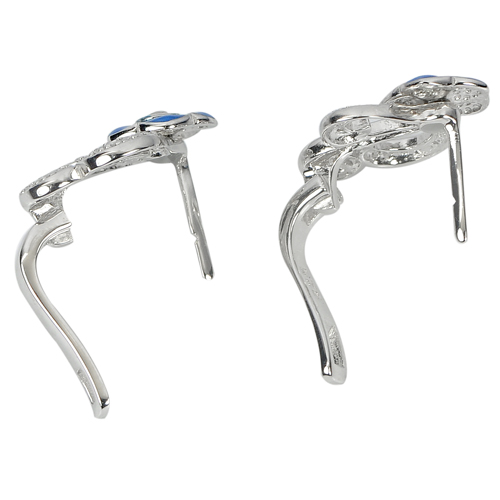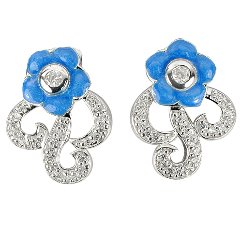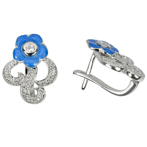4.64 G. Nice Flower Enamel With White CZ Real 925 Sterling Silver Earrings