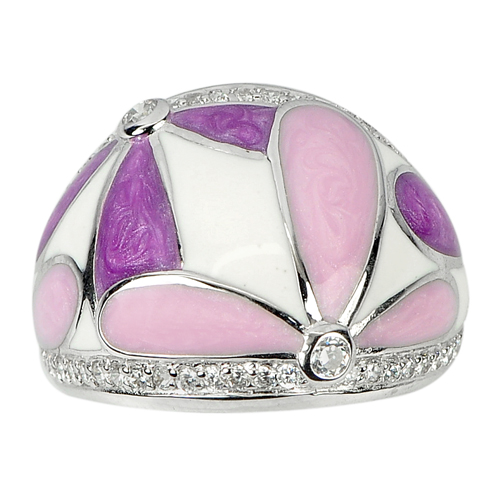 5.32 G. Flower Enamel Lovely Design Real 925 Sterling Silver Ring Size 7