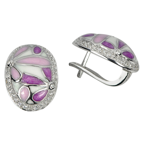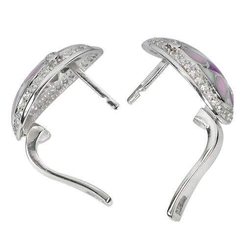 6.32 G. Multi-Color Flower Enamel Design Real 925 Sterling Silver Earrings
