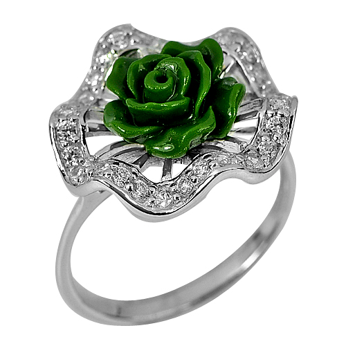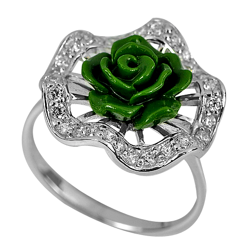 3.48 G. Beautiful Green Rose Resin with CZ Real 925 Sterling Silver Ring Size 8
