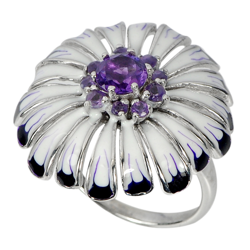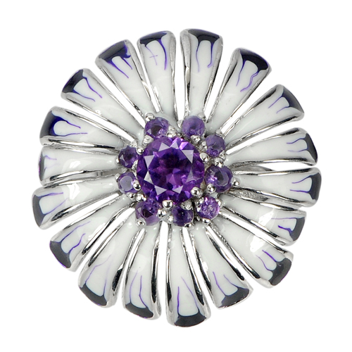 925 Sterling Silver Ring Size 8 Jewelry with Natural Amethyst and Enamel 8.08 G.
