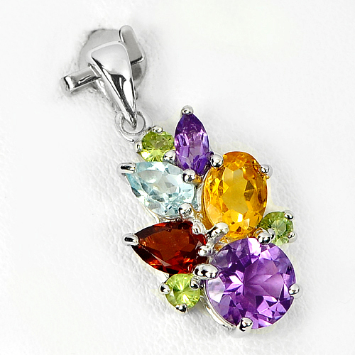 Natural Amethyst Citrine Topaz Garnet Peridot Real 925 Sterling Silver Pendant