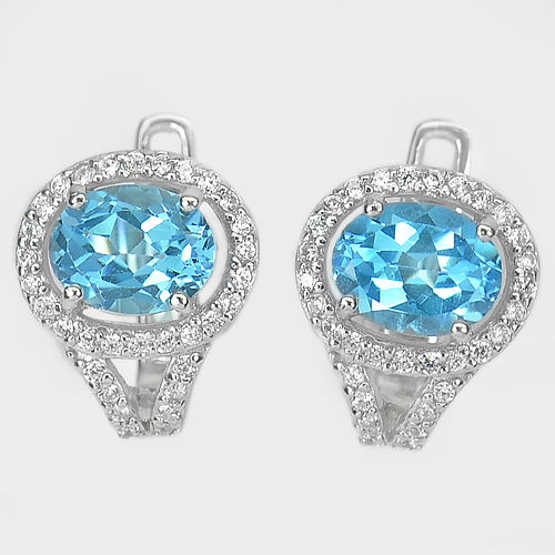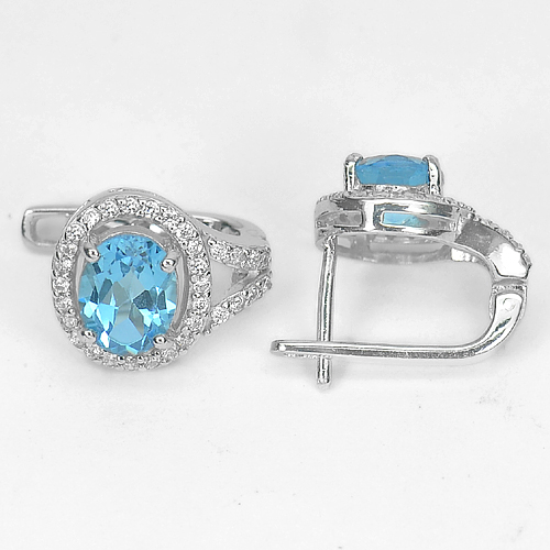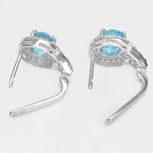 6.01 G. Natural Gemstones Swiss Blue Topaz Real 925 Sterling Silver Earrings