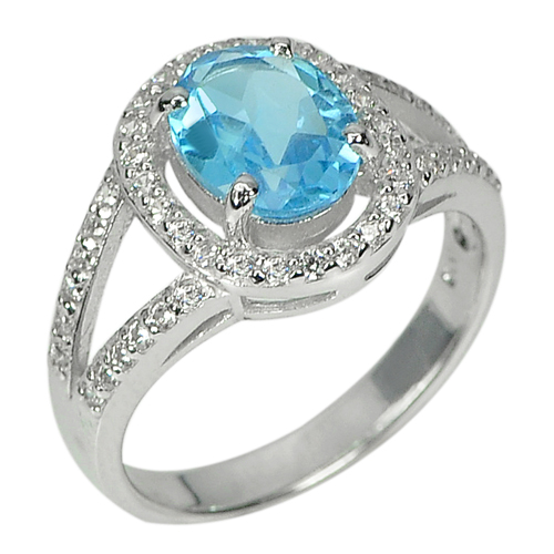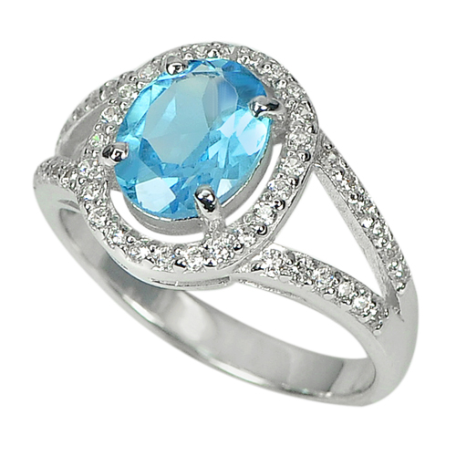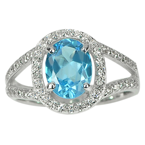 Natural Swiss Blue Topaz Oval Size 9 x 7 Mm. 1 Pc. And White CZ Round Size 1 x 1 Mm.