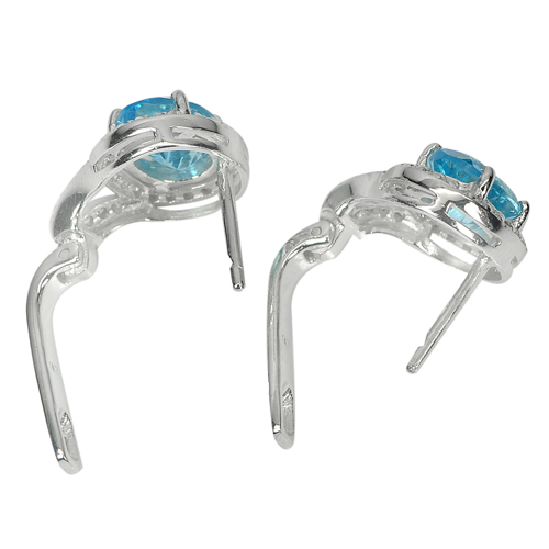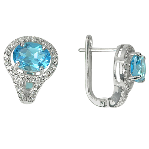 5.79 G. Beautiful Natural Gem Swiss Blue Topaz Real 925 Sterling Silver Earrings