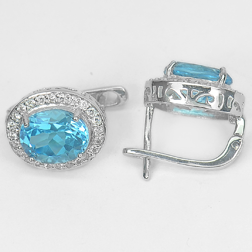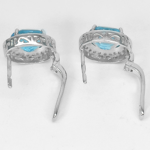 Swiss Blue Topaz Real 925 Sterling Silver Earrings 6.28 G. Natural Thailand