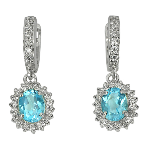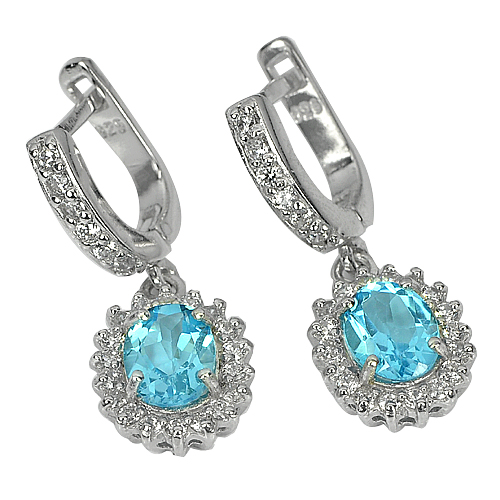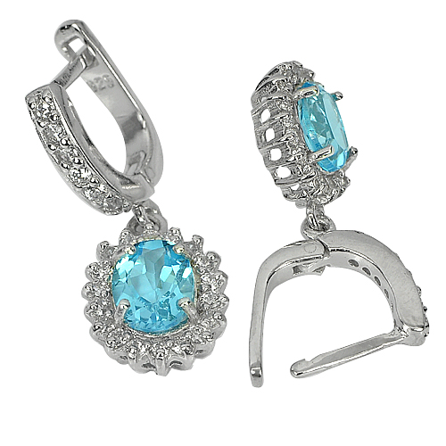 5.52 G. Natural Gemstones Swiss Blue Topaz Real 925 Sterling Silver Earrings