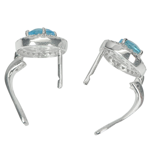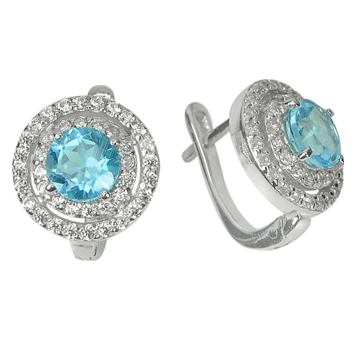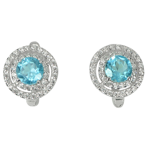 4.26 G.Natural Gemstone Round Swiss Blue Topaz Real 925 Sterling Silver Earrings