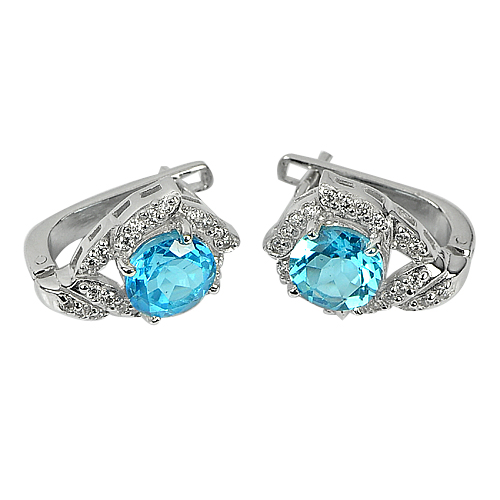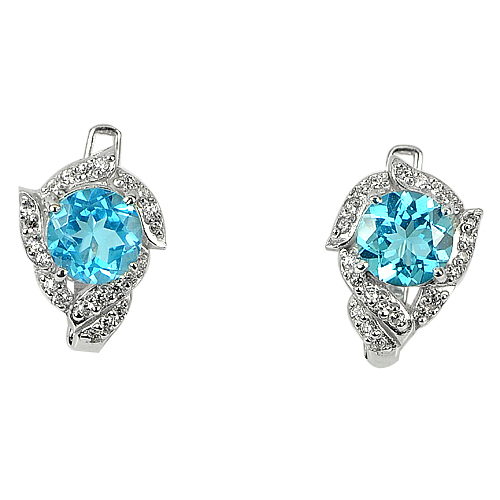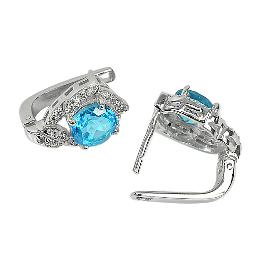 4.89 G. Alluring Natural Gem Swiss Blue Topaz Real 925 Sterling Silver Earrings