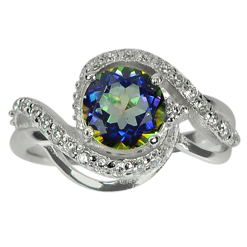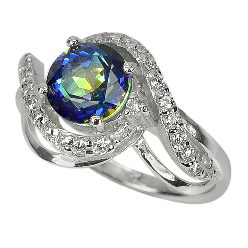 925 Sterling Silver Ring Jewelry with Natural Mystic Blue Quartz and CZ Size 6