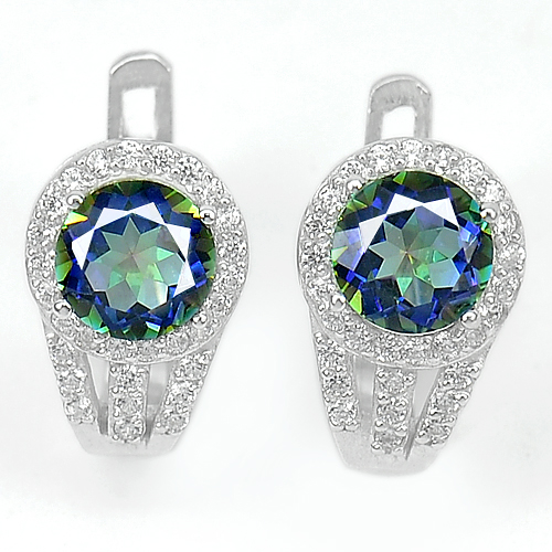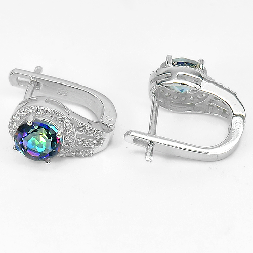 4.76 G. Mystic Blue Natural Gem Quartz Real 925 Sterling Silver Errings