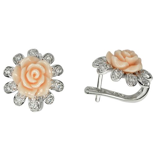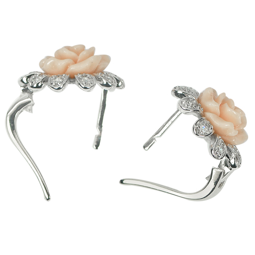 Orange Flower Carving Size 10 x 10 Mm. And Round White CZ 1.5 x 1.5 Mm. Stam 925