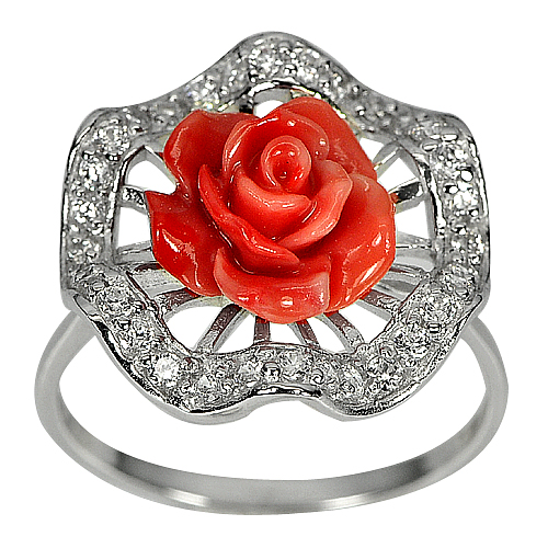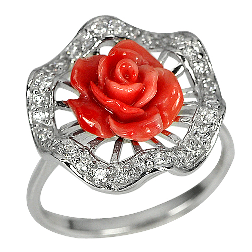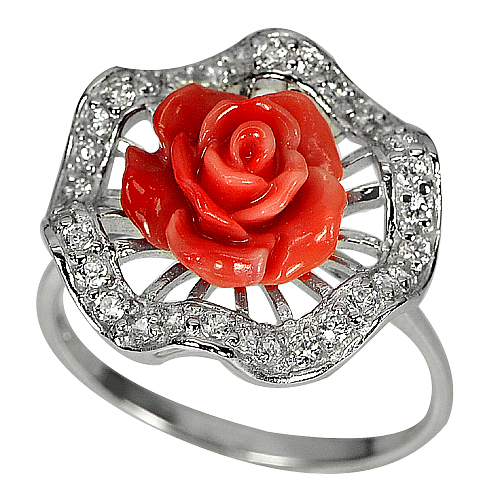 Red Flower Carving Size 10 x 10 Mm. And White CZ Round Size1.5 x 1.5 Mm.