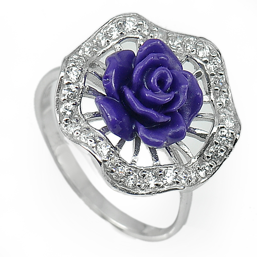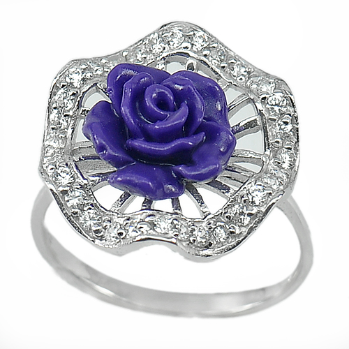 3.60 G. Purple Flower Resin Real 925 Sterling Silver Jewelry Ring Size 8