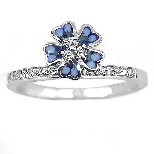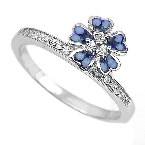 Center: Flower Blue Enamel. And White CZ Round Size 1 x 1 Mm. Stam 925