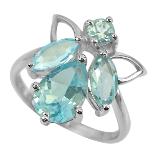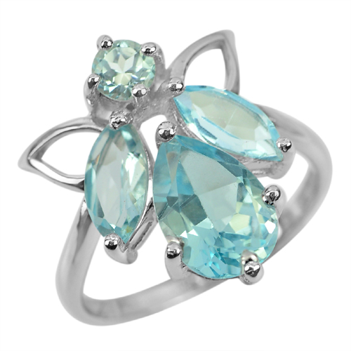 3.79 G. Natural Swiss Blue Topaz Gem Real 925 Sterling Silver Fine Ring Size 7