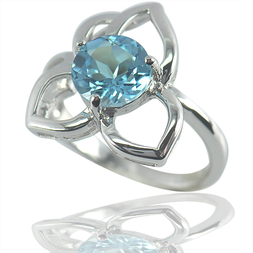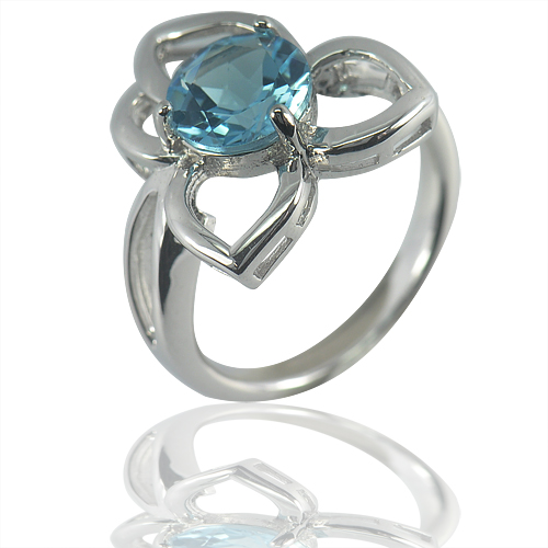 925 Sterling Silver Ring Size 6 Natural Gem Round Shpe Baby Blue Topaz 4.50 G.