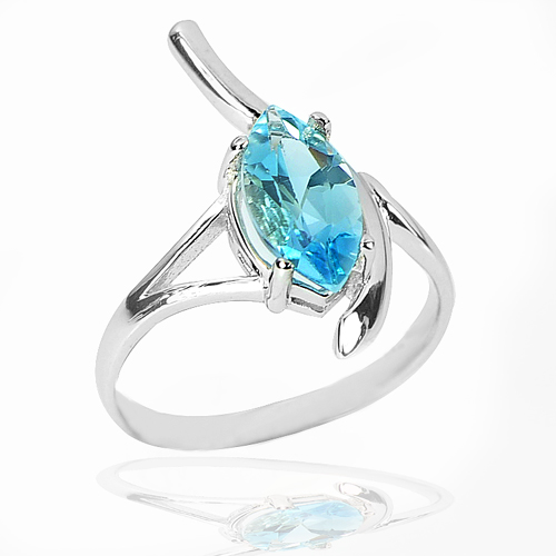 2.66 G. Real 925 Sterling Silver Ring Size 8 Lovely Natural Gem Baby Blue Topaz