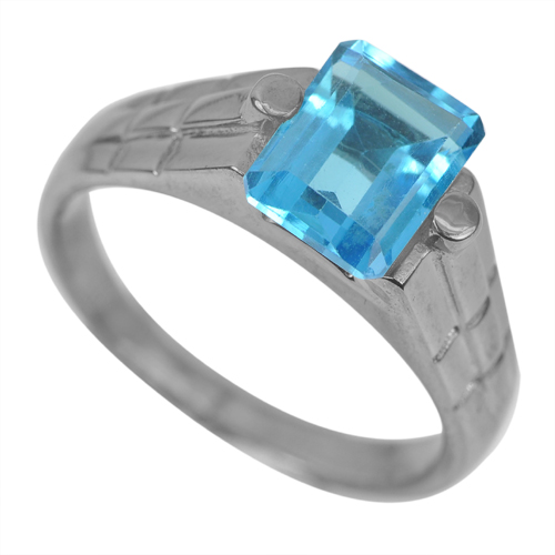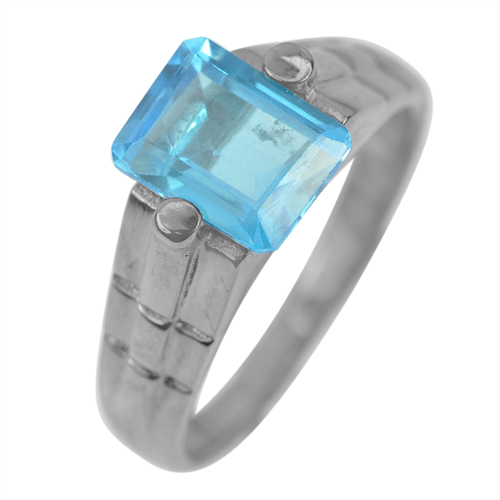 4.49 G. Natural Swiss Blue Topaz Real 925 Sterling Silver Oxidize Ring Size 8
