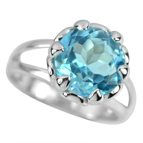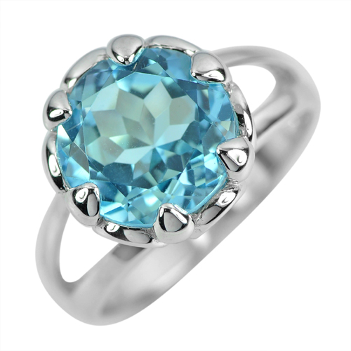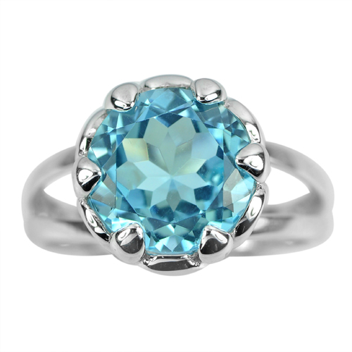 4.54 G. Natural Gems Swiss Blue Topaz Real 925 Sterling Silver Ring Size 8