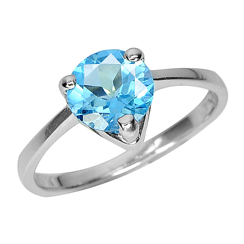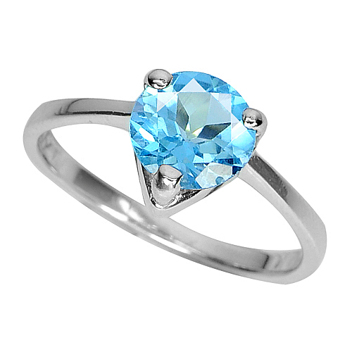 2.33 G. Round Natural Gem Swiss Blue Topaz 925 Sterling Silver Ring Size 8