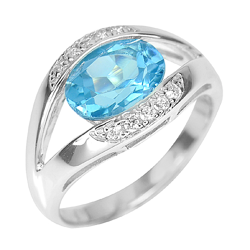 Natural Blue Topaz Oval Size 10 x 7 Mm. White CZ Round Size 1.5 x 1.5 Mm.