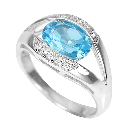 4.46 G. Natural Gemstone Blue Topaz with CZ Real 925 Sterling Silver Ring Size 8