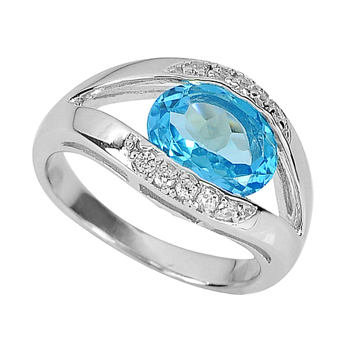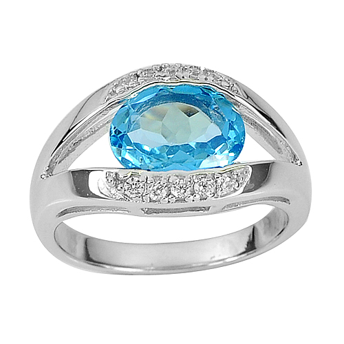 Oval Swiss Blue Natural Topaz Size 10 x 8 Mm. 1 Pc. And Round White CZ Size 1.5 x 1.5 Mm. 10 Pcs.