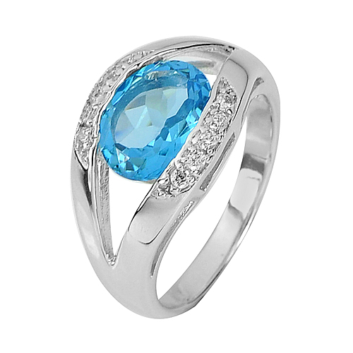 4.26 G. Natural Gem Swiss Blue Topaz Real 925 Sterling Silver Ring Size 7