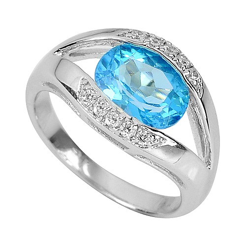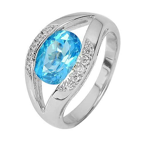 4.55 G. Natural Swiss Blue Topaz Real 925 Sterling Silver Jewelry Ring Size 8