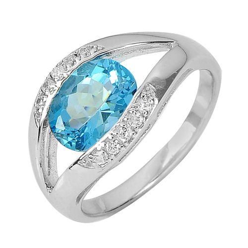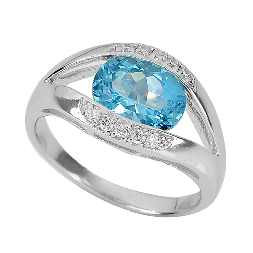 Oval Swiss Blue Natural Topaz Size 10 x 8 Mm. 1 Pc. And Round White CZ Size 1.5 x 1.5 Mm. 10 Pcs.