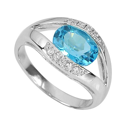 Oval Swiss Blue Natural Topaz Size 10 x 8 Mm. 1 Pc. And Round White CZ Size 1.5 x 1.5 Mm. 10 Pcs.