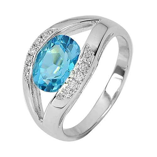 4.54 G. Real 925 Sterling Silver Attractive Ring Size 9 Natural Swiss Blue Topaz