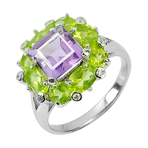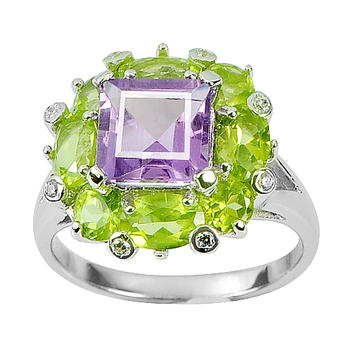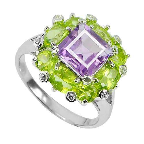 6.09 G. Good Natural Gemstone Amethyst Peridot 925 Sterling Silver Ring Size 8