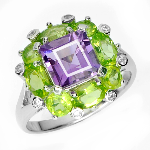 925 Sterling Silver Ring Jewelry with Natural Gems Amethyst and Peridot Size 9