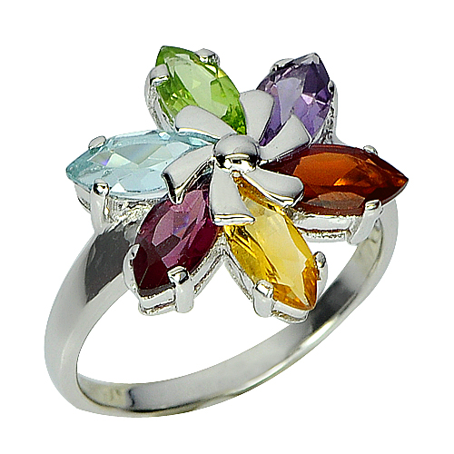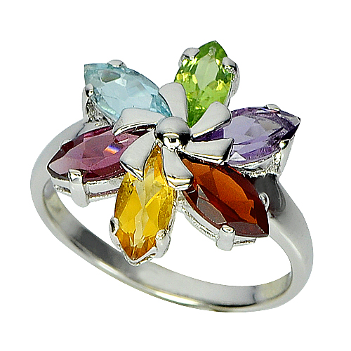 4.35 G. Natural Gem Garnet Peridot Topaz Citrine 925 Sterling Silver Ring Size 8
